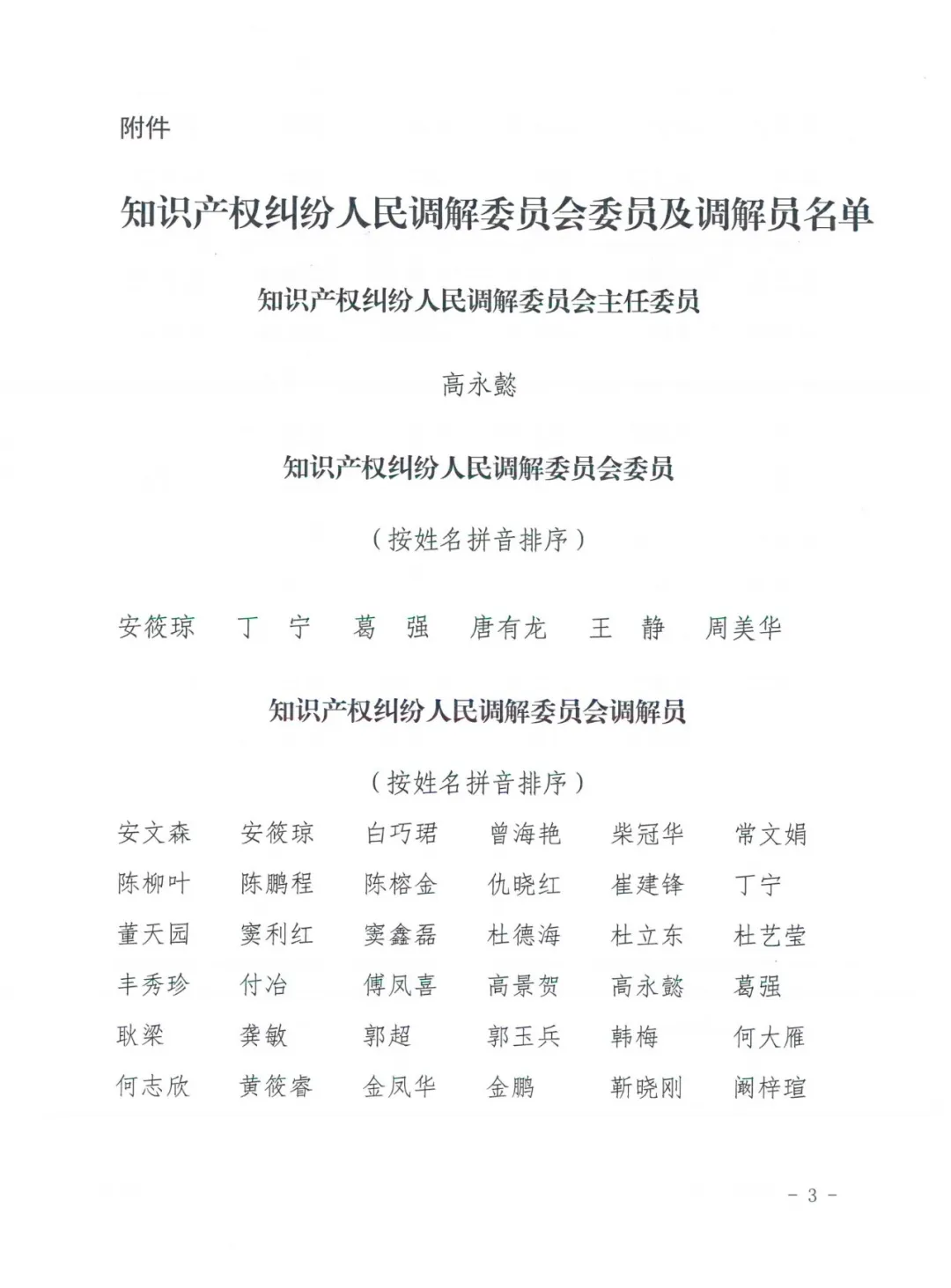 附件:知识产权纠纷人民调解委员会委员及调解员名单